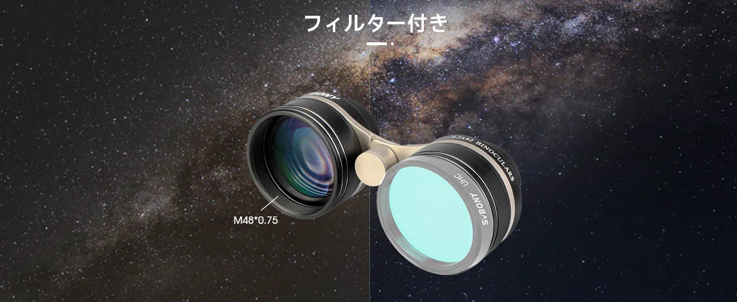 - 【携帯便利】軽量で持ち運びに便利なサイズで、片手でも楽に持ちやすいです。また、SV407 星空観察用双眼鏡はビノホルダー用のねじ穴がありますので、三脚で固定して星座の位置を指し示すとか観望会とかでみんなで楽に使うことができます。