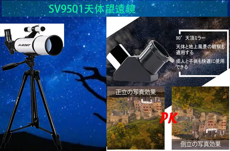 1.25インチ90度天頂ミラー付き、正立な画像を得られます。地上風景と天体の観察も明るい画像を提供できます。