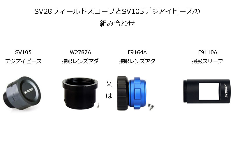 組み合わせ順番:SV28+F9110Aアダプター+F9164A/W2787A(接眼レンズアダプター)