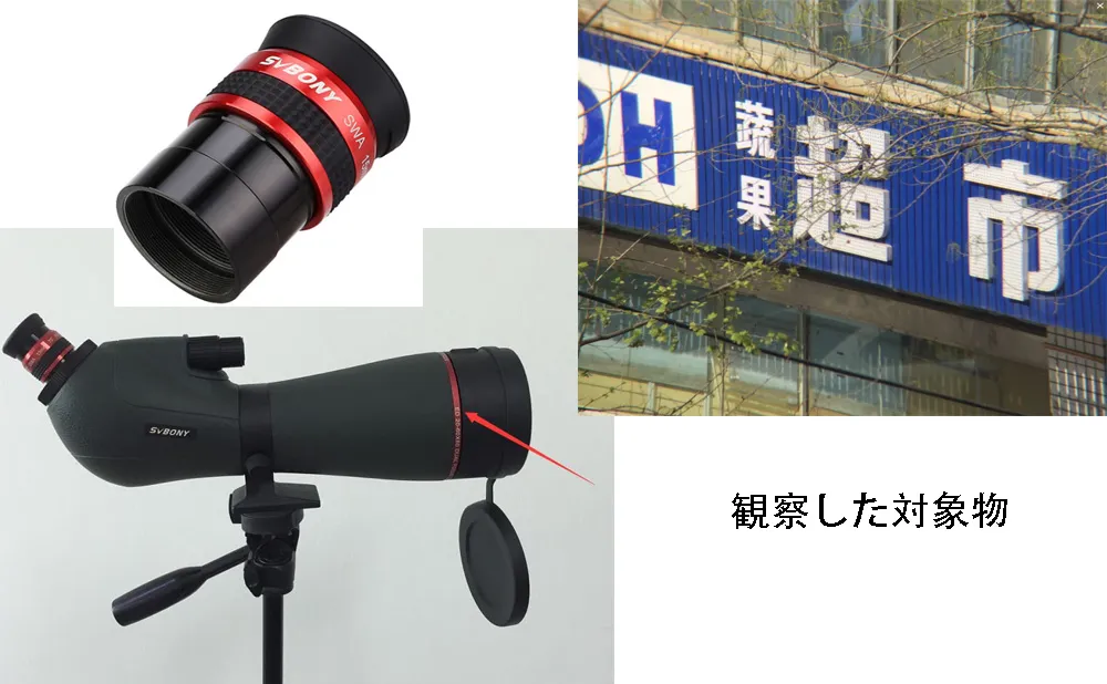 高性能の以外に、SV406Pフィールドスコープのズームアイピースは取り外すことができます。多くのお客様は天体望遠鏡の1.25インチの接眼レンズをSV406Pに取り付けたいんです。