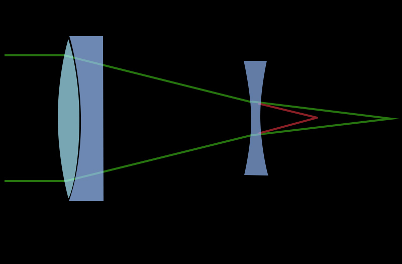 バローレンズを追加した後に画像を拡大できるのはなぜですか?接眼レンズのように焦点距離が変わりましたか?上図のように、接眼レンズの後ろに凹レンズを追加することで、光の屈折の焦点距離を伸ばし、倍率を上げています。