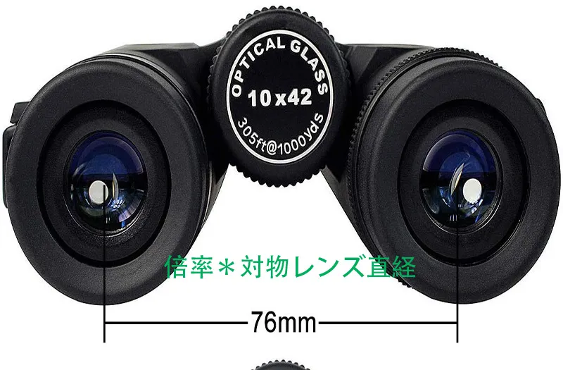 これは「10倍42ミリ」と読み、倍率が7倍で口径が42ミリの双眼鏡であることを示しています。 倍率が7倍?