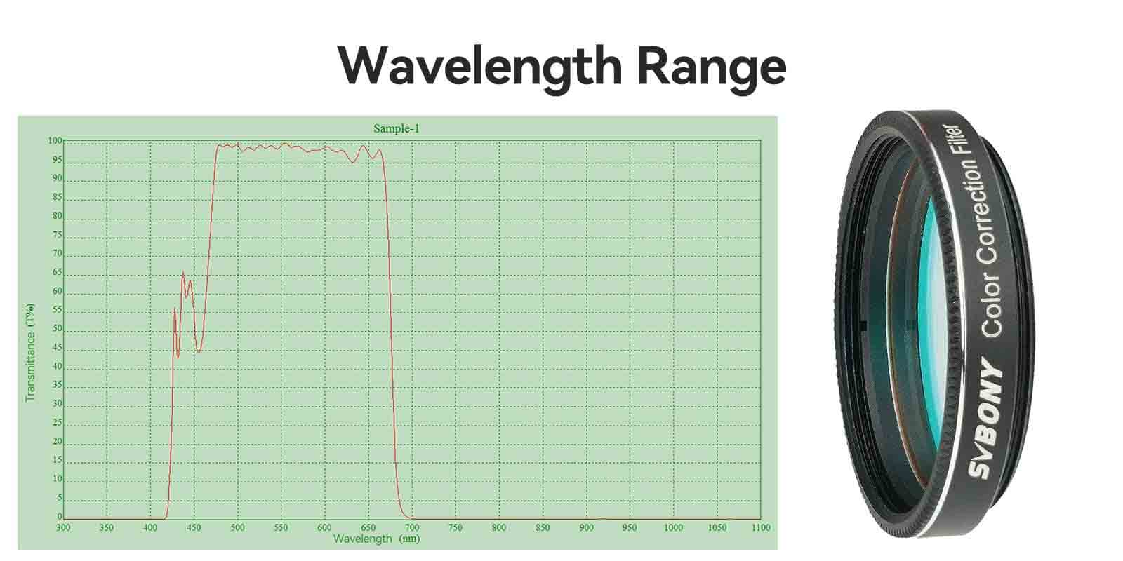 なぜこれらの波長に焦点を当てるのでしょうか? APO 以外の望遠鏡の多くは、赤と緑の波長に焦点を当てることを優先しており、その結果、紫色のフリンジが発生します。 SV231 は、紫色と濃い青色の光を減衰しながら透過するため、画像の正確な色表現を維持します。