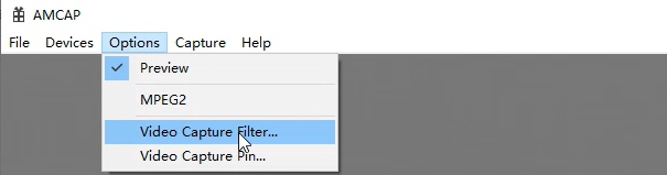 4、 [amcap-x64] をクリックし、[Options] を選択して、 [Video Capture Rilter...] を選択してから、ファームウェアのバージョンを確認できます。