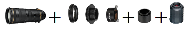 Nikon Fマウントレンズ+ W9112Bアダプター+1.25インチ延長チューブ+カメラ