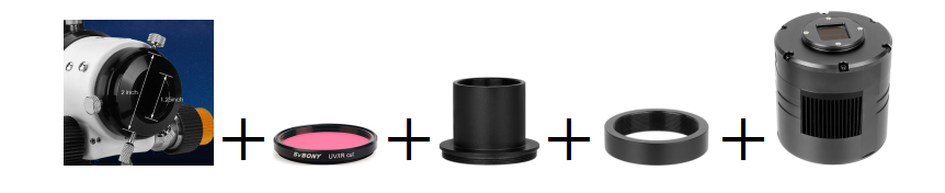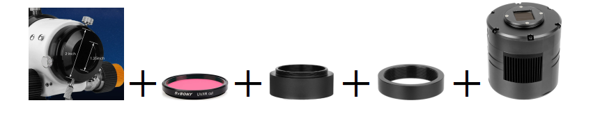 1.25インチインターフェースの望遠鏡+1.25インチフィルター+1.25インチ延長チューブ+カメラ