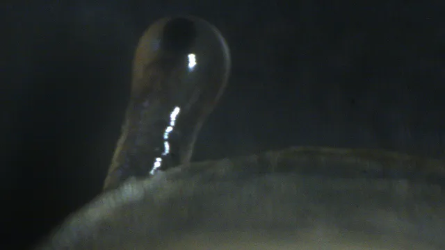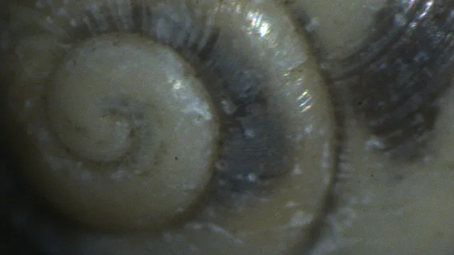 SV305を解剖顕微鏡に接続され、ステージ上に小さなカタツムリがあります。