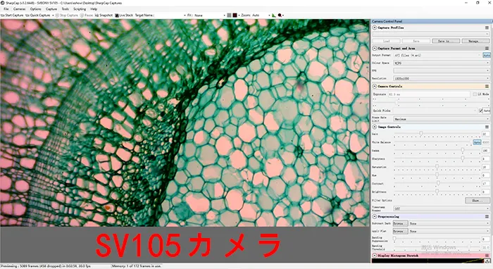 ところで、弊社がSV105/205/305というCMOSカメラのシリーズが販売されています。そこで、今回に顕微鏡でSV 105&SV 305 CMOSテストの比較が紹介させていだたきます。