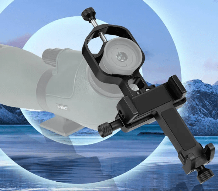 スマホで手軽に天体写真を撮るなら、望遠鏡にしっかり固定できる専用アダプターが必須アイテム。様々な機種に対応する汎用「SV214 Pro スマートフォンアダプター」が便利です。