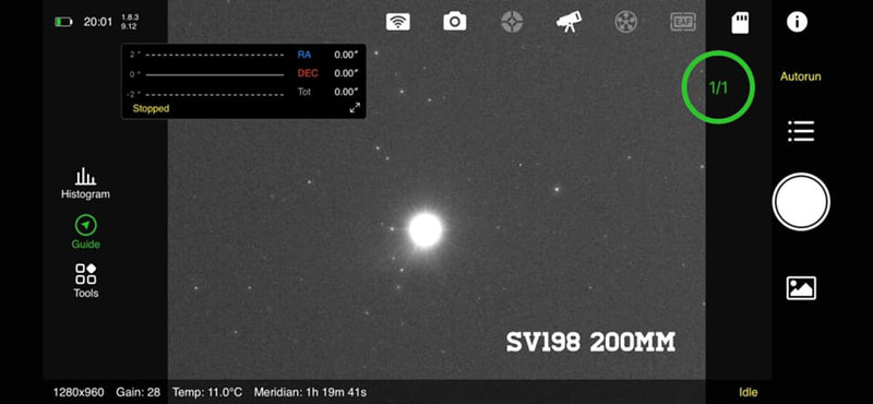 オートガイドは口径50mmのSV198、焦点距離200mmの方が楽です。