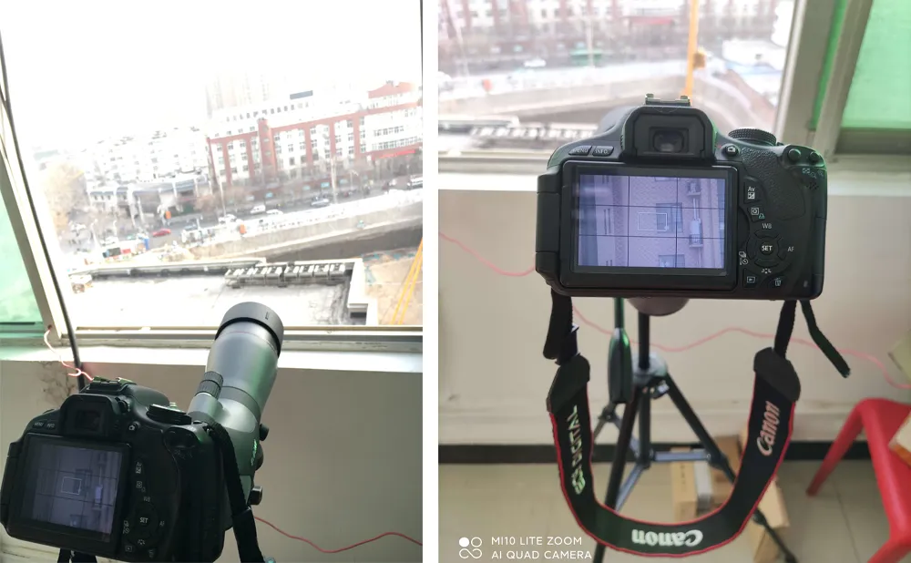 カメラを取り付ける前に、まずはSV46Pフィールドスコープを綺麗な対象物を見えるまで調整してくださいね。後はSV123撮影用スリーブとカメラT-リングを接続します。カメラを固定した後に、ピントを合わせるように、SV123撮影用スリーブの長さを伸縮して見てくださいね。