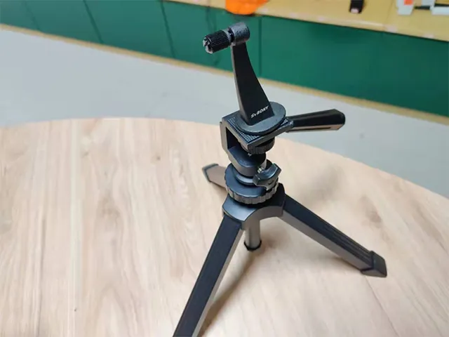 フィールドスコープをお持ちの場合は、三脚を取り付けて窓側に置いて、観察することができます。窓際にテーブルがある場合は、より快適な組み合わせ方法があります。この卓上三脚とフィールドスコープを取り付けて、テーブルに置いて、そしてテーブルの前で座って、窓の外の美しい景色を眺めることができます。高さと方向が簡単に変わります。最も適した角度に調整して楽に観察できます。