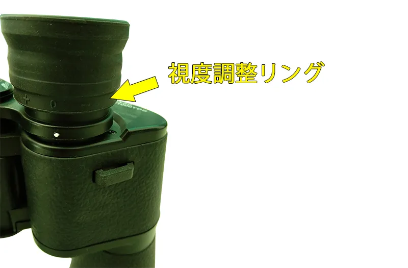 視度調整とは、右側の接眼レンズのリングを回して左右の視力差を0(ゼロ)にしておくことです。