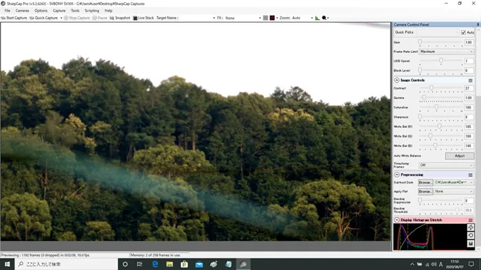 *地上の風景から(電線とかいろいろ入ってて申し訳ありません)。SharpCapの「Adjust」で処理