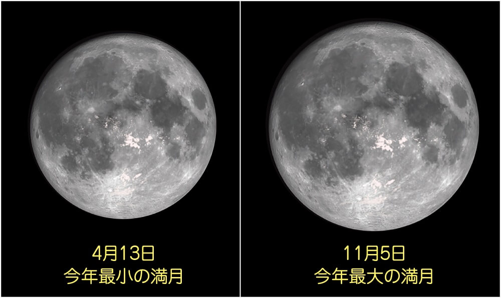 最小の満月と最大の満月の大きさの違い丨 出典:ケンコー