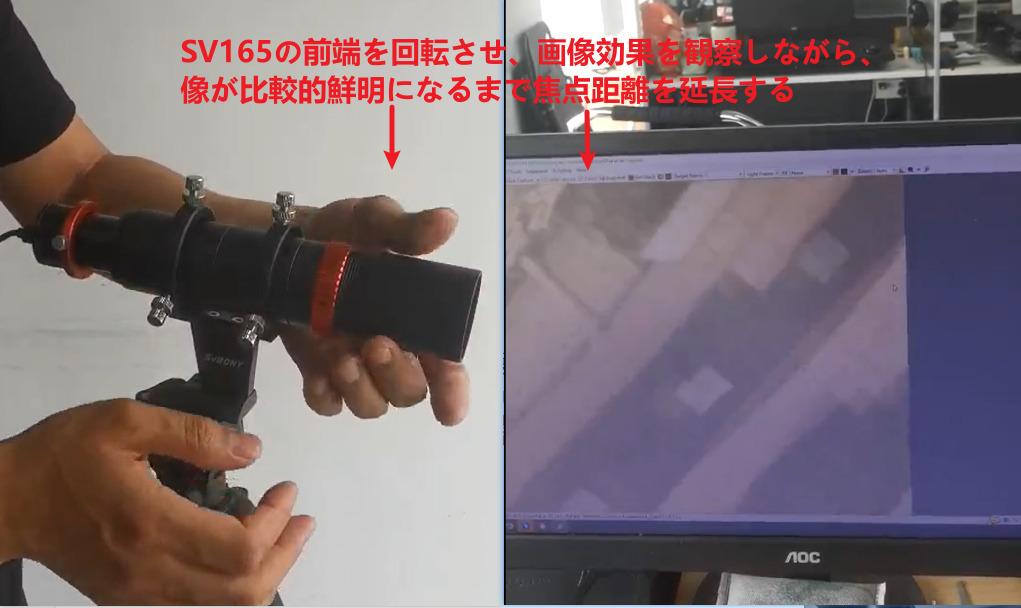 SV905CカメラとSV165ガイドスコープ(口径40mm)を組み合わせて使用する際のピント調整方法