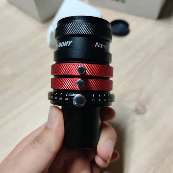 ADC大気分散補正プリズムは2枚回転式のウェッジプリズムを内蔵して、大気分散を補正できるプリズムです。大気分散とは低空の惑星の像が大気の影響により、上下方向へ色が分散、像が不鮮明になる現象です。ADCプリズムのウェッジプリズムを回転して、適切な角度に調節して、色滲みを補正することができます。本日は皆様に今月発売した新商品、このSV199 1.25” ADC大気分散補正プリズムの使い方を紹介したいと思います。