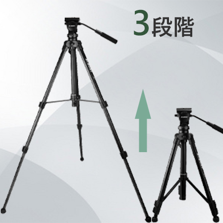 最大164cmまでの高さに対応する三脚。縮長は70cmになり、さまざまなシーンで使いやすいモデルです。また調節可能なハンドルを備えており、クレーン使用時にカメラ動作を制御するのに最適です。