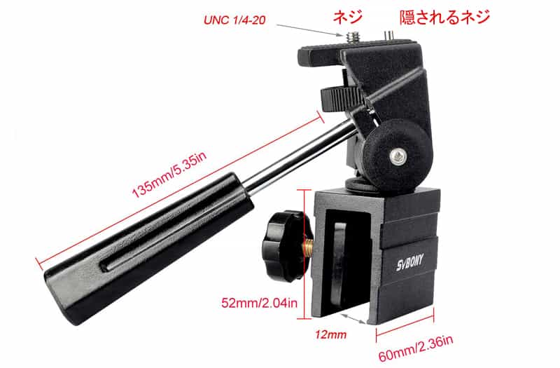 下部には、ほとんどのネジ穴に接続できる国際UNC 1/4-20ネジ頭があります。例えば、SVBONYの光学製品:単眼鏡、双眼鏡、スポッティングスコープのネジ穴が国際標準サイズなので、すべてマウントに接続できます。隠された1つのネジ頭もあるから、2つのネジ穴があるスコープに接続できます。ネジ穴が1つしかない場合、このネジ頭はオブジェクトの表面に触れると非表示になります。使用にとても便利です。