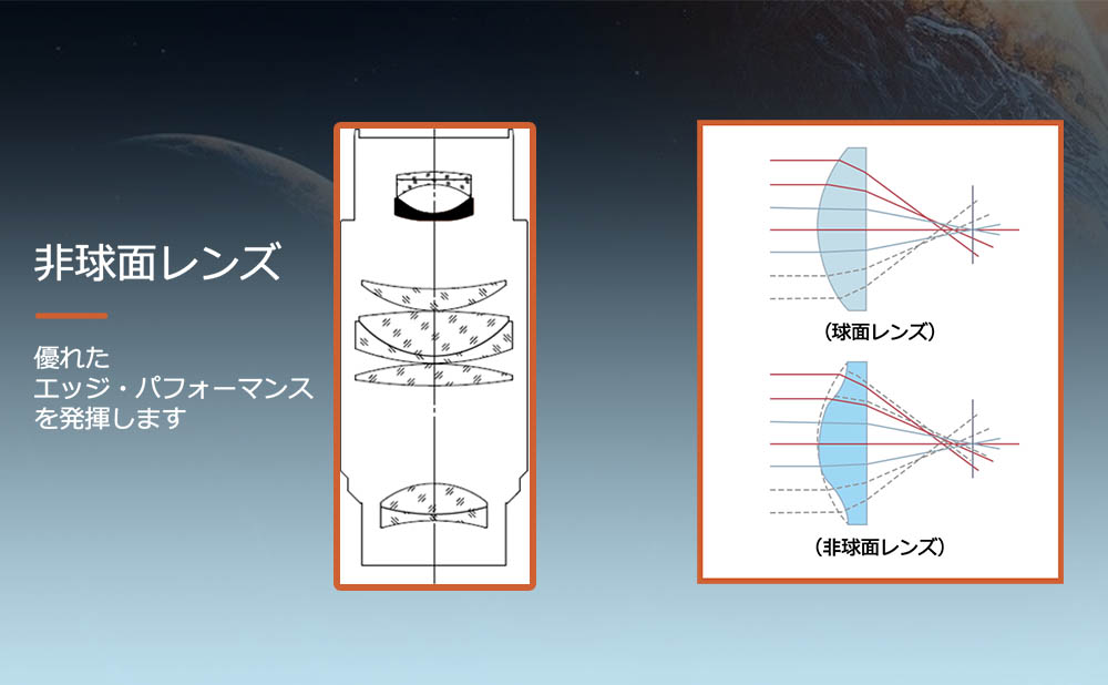 高価な両面非球面レンズ搭載