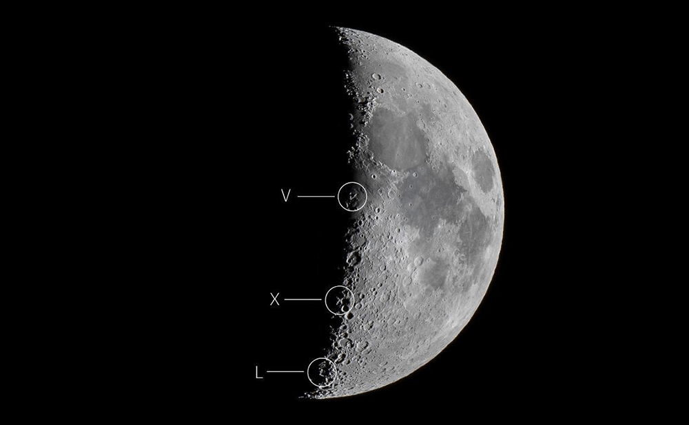 上弦の月の頃、太陽の光がクレーターの縁を照らす角度によって、月面の明暗境界線上にアルファベットの「X」が浮かび上がることがあります。これはブランキヌス、ラカイユ、プールバッハという3つのクレーターの壁が組み合わさってできる地形効果です。6月22日は19時10分頃から約1時間が観測チャンス。継続時間が短く条件が揃わないと見られないため、見逃せません。倍率50倍以上の望遠鏡で挑戦してみてください。