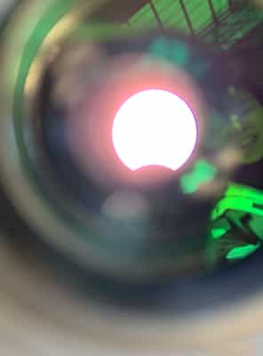 望遠鏡に特殊なフィルターを装着し、太陽を直接覗いて見る方法です。専用のフィルターを正しい方法で使う必要があります。絶対に直接太陽を見けません。
