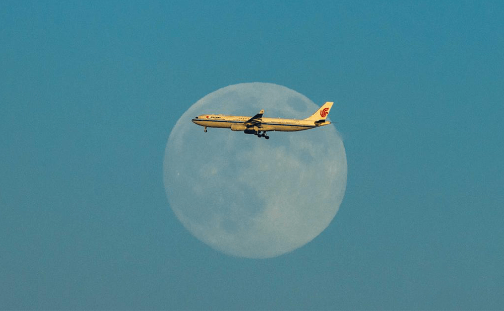 飛行機とスーパームーン ❘ 北京(撮影:吳魯萍)