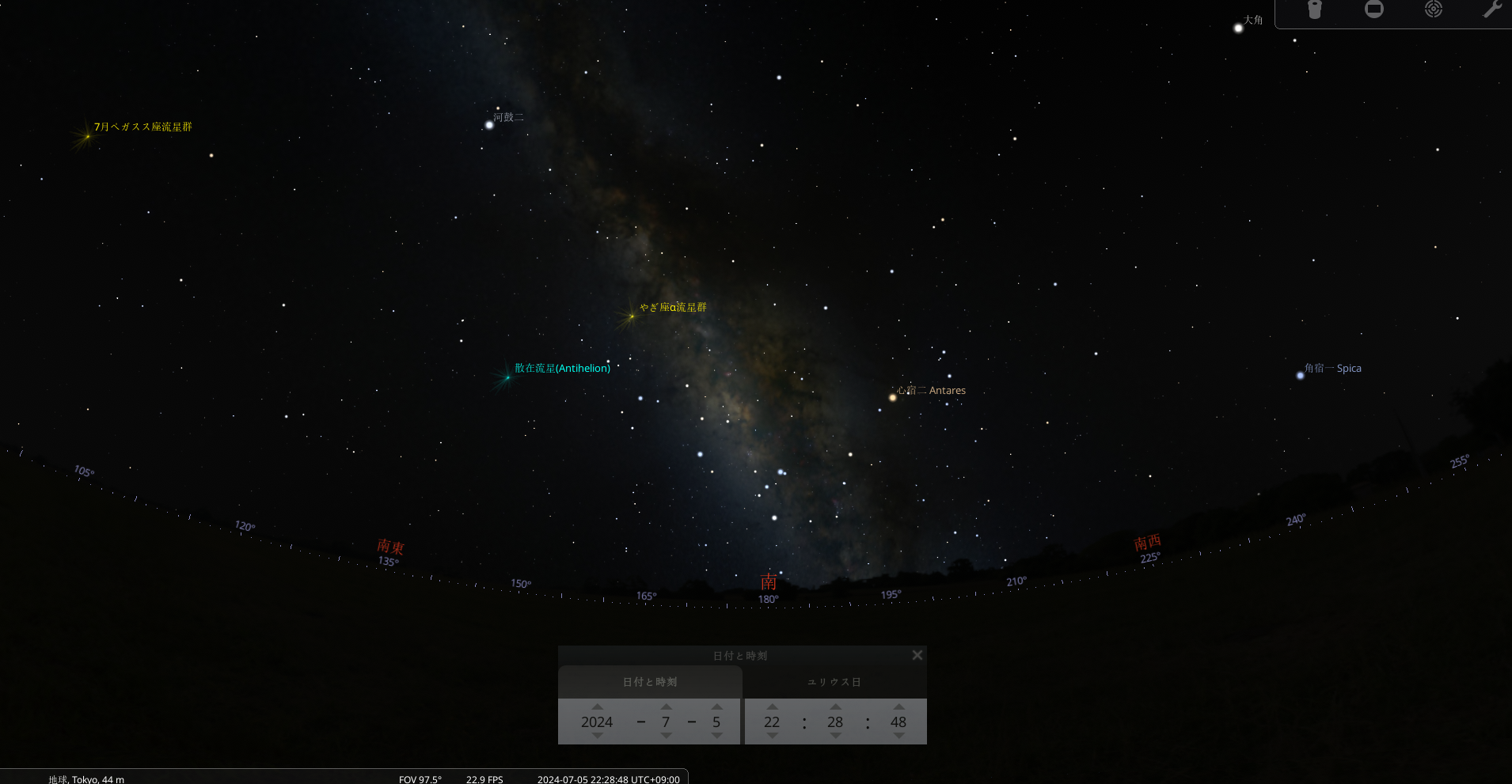 いよいよ天の川のシーズンがきました!7月から夏の天の川銀河中心が見頃のシーズンを迎えます。午後8時に完全に暗くなった後、天の川の中心が南東から昇り、南西に沈みます。