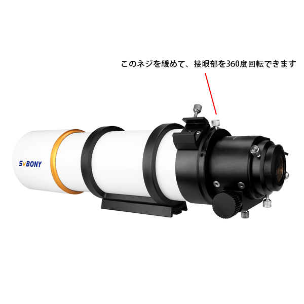 このネジを緩めて、接眼部を360度回転できます。自分のニーズに応じてしようすればいいです。