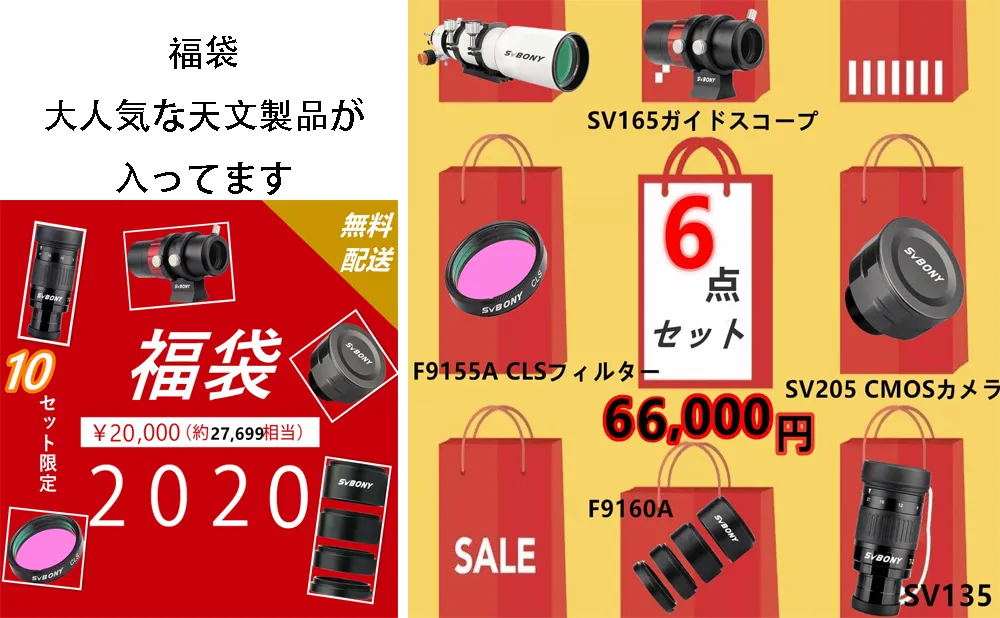 2、そして、天文製品にご興味がございましたら、福袋をオススメいたします。弊社の大人気の天文製品をまとめて福袋に入れました。きっとお買い得と思います。ご都合が良ければご注文はお早めにどうぞ!