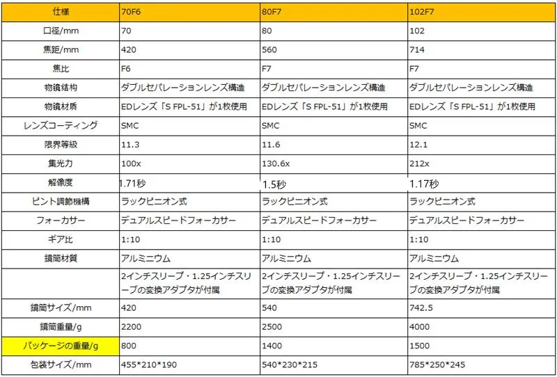 いつも応援してくれてありがとうございます。SV 503 ED望遠鏡シリーズは70&80&102 MMを開発しました。SV503シリーズに収納ケースは付属しません(*)。購入後しばらくの間は、収納ケースを買いたいなら、ご参考ください。