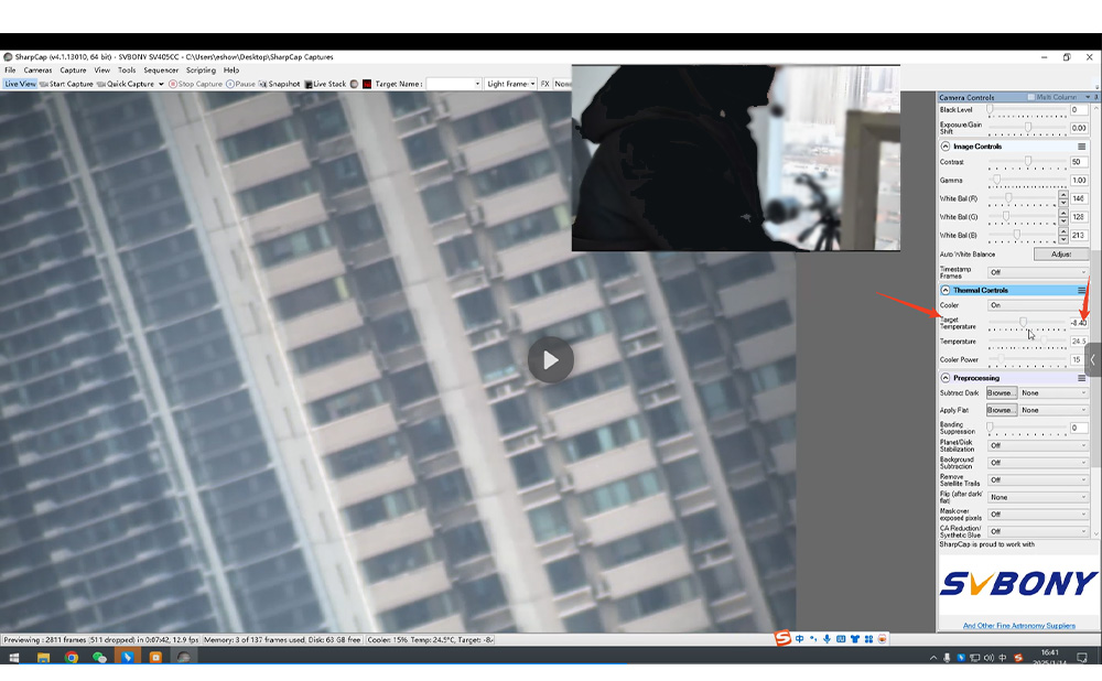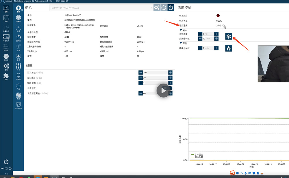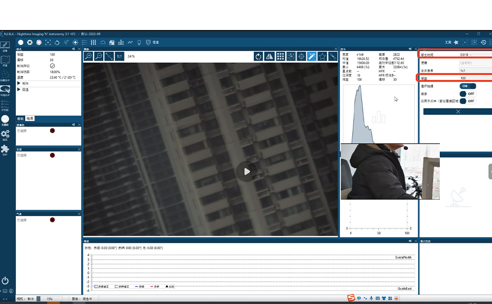 次のステップはパラメータを設定することです。 (初心者の方は、露出時間、ゲイン、冷却温度のみの調整をお勧めします)