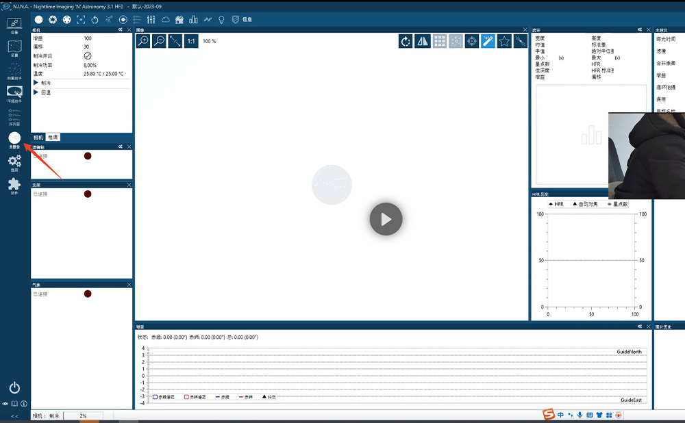 まず、ダウンロードしたNINAソフトウェアを開き、電源ボタンをクリックします。