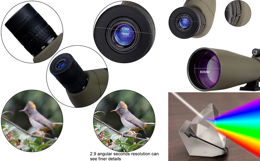 フィールドスコープで使用されるガラスの品質は、目に届く画像の品質に大きな違いをもたらします。メーカーが提供する仕様を確認して、価格に見合った良好なレンズを入手していることを確認してください。