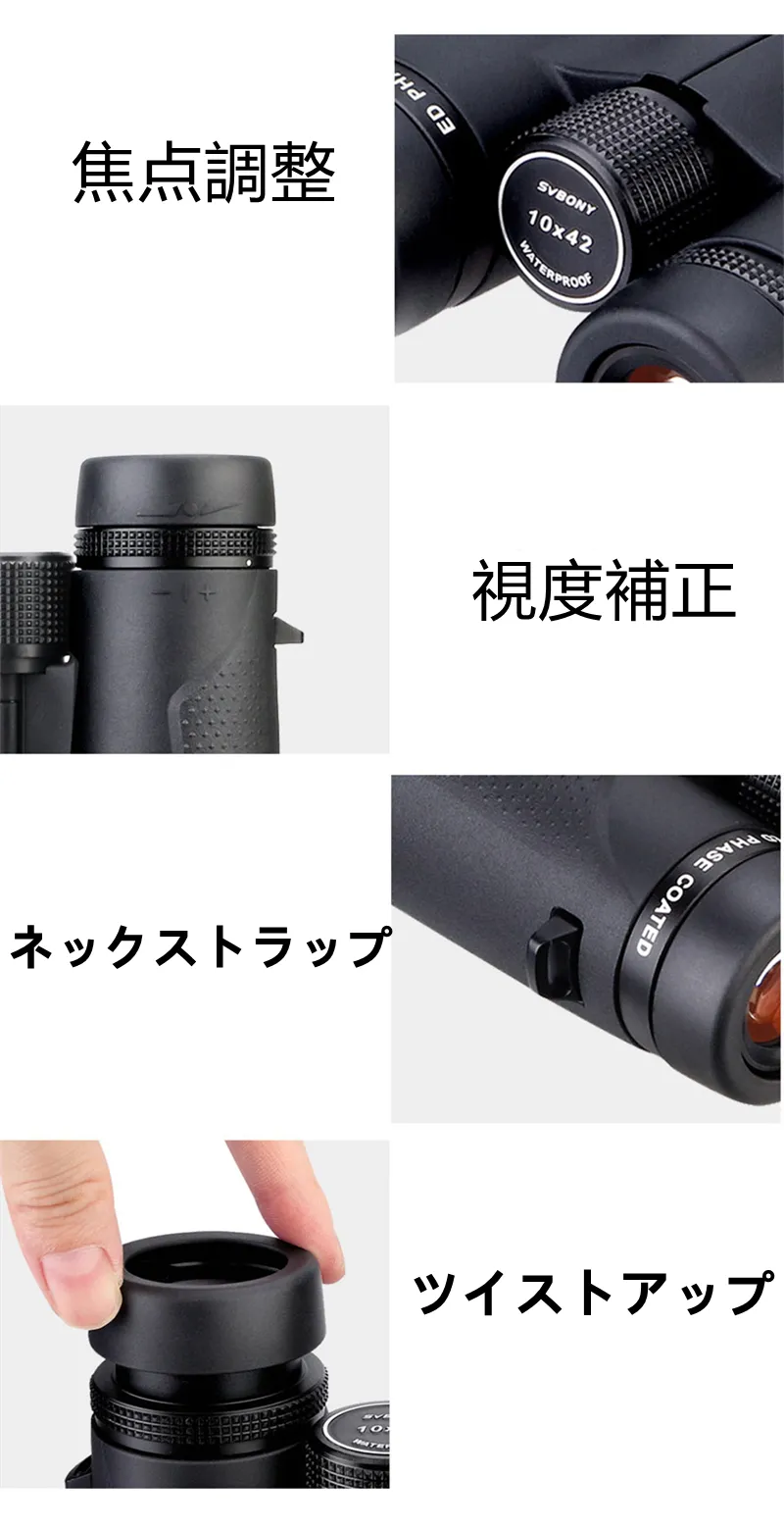 SVBONY SV202 10x50 EDレンズ 双眼鏡 ダハタイプ IPX7防水 Bak-4プリズム
