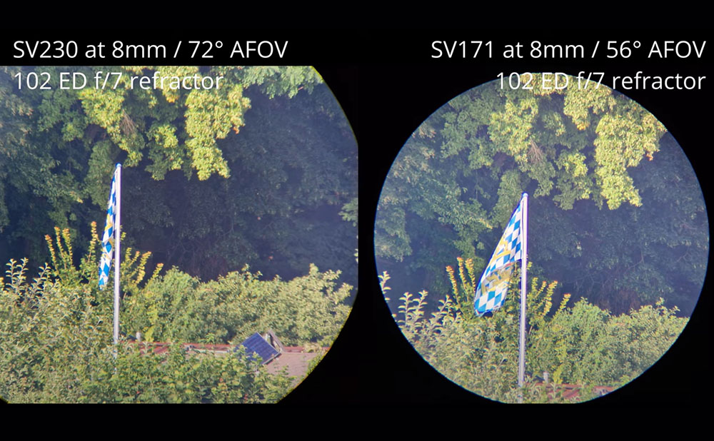 SV230の画像はより明るく、より鮮明で、色収差がより適切に補正され、コントラストもより優れています。もちろん、最大の違いは視野範囲です。SV230 の焦点距離を最も長くに設定すると、SV171より視野が広くなり、より臨場感があります。