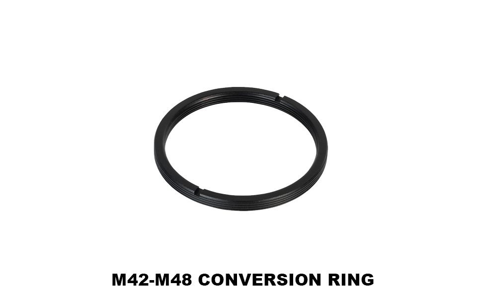 M42 male can be converted to M48 female and can be extended by 16.5mm.