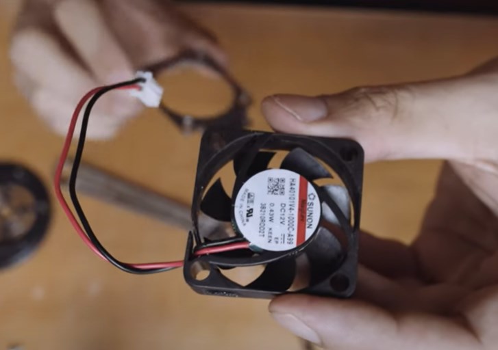 今度は、ファンを取り出して正しく取り付けます。取り外した 4 本のネジを締めて、ファンを固定します。