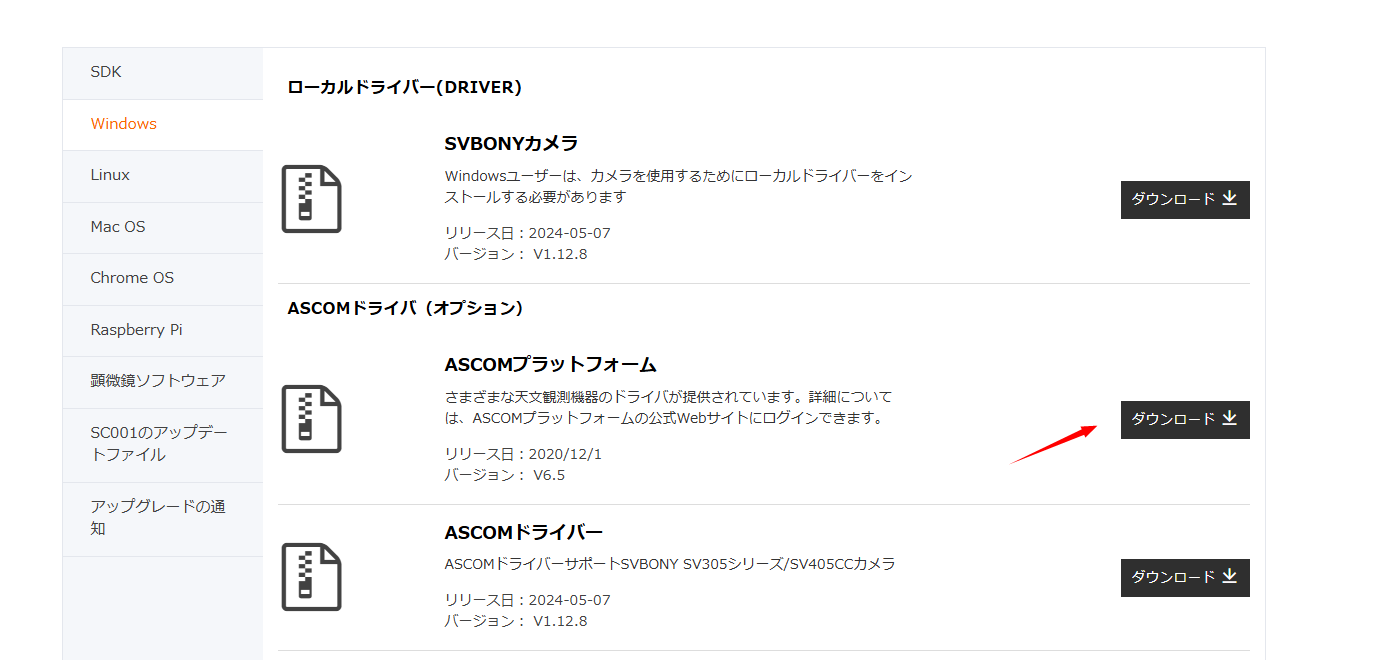 A3 必要な場合は、公式 Web サイトに ASCOM プラットフォームとドライバーをダウンロードできます。