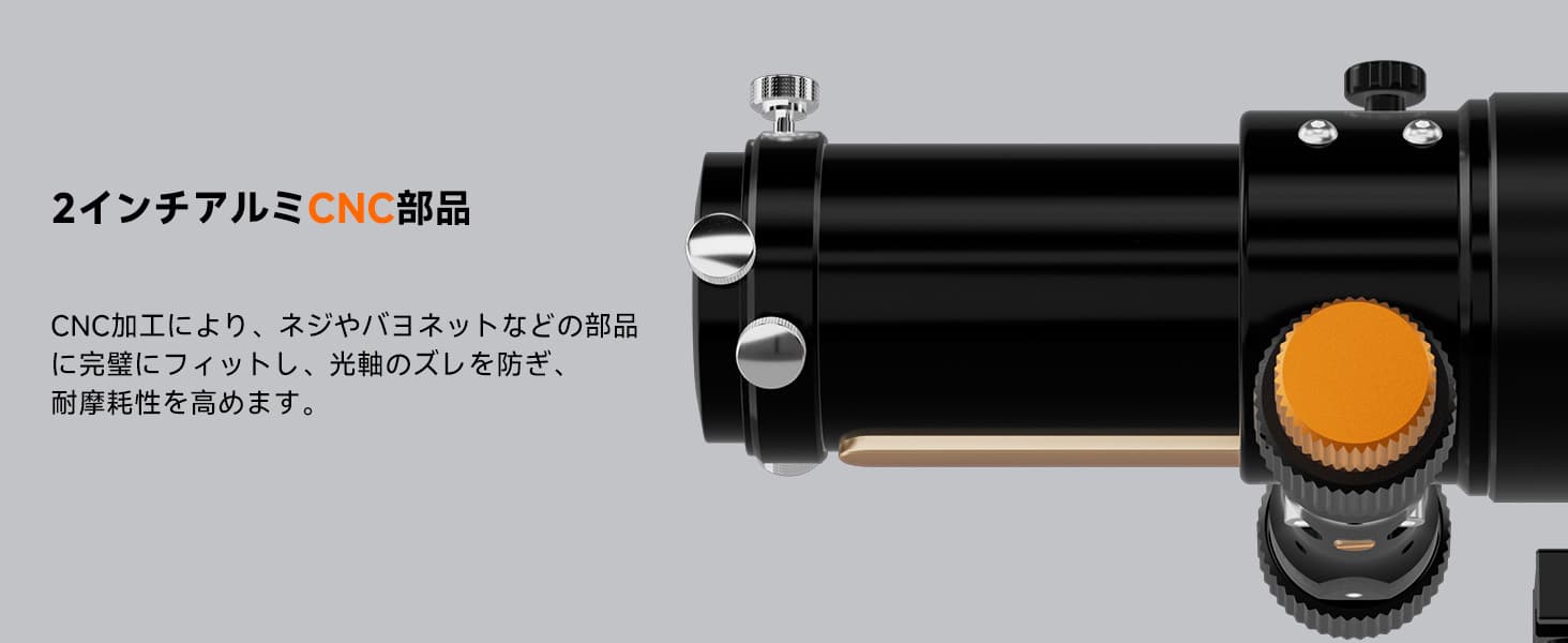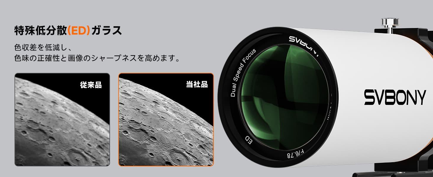 - 対物レンズ:FPL51およびランタン特殊ガラスを使用した2枚構成EDレンズ