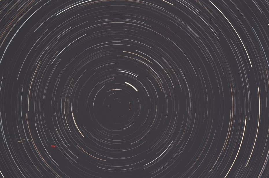 また北天方向に向け複数枚の長時間露光を実施し、星の軌跡写真を作成しました。ボーテルクラス8という光害の強い自宅庭からの撮影ながら、星像は驚くほどクリアに描写されました。ただしf/4.5という明るさでの撮影に不慣れだったため、適正露出の調整を怠り、背景の空が通常より明るめに写ってしまった点は反省点です。
