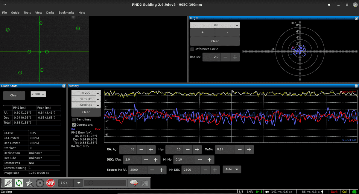 これらの実験は、SV905CカメラがST4ガイドカメラとして動作することを示します。