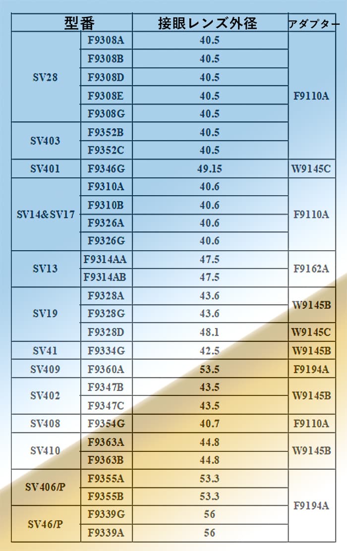 F 9334 G(SV 41フィールドスコープ)−W 9145 B(SV 186カメラアダプター)−W 2787 A−F 9159 A(SV 105)である。