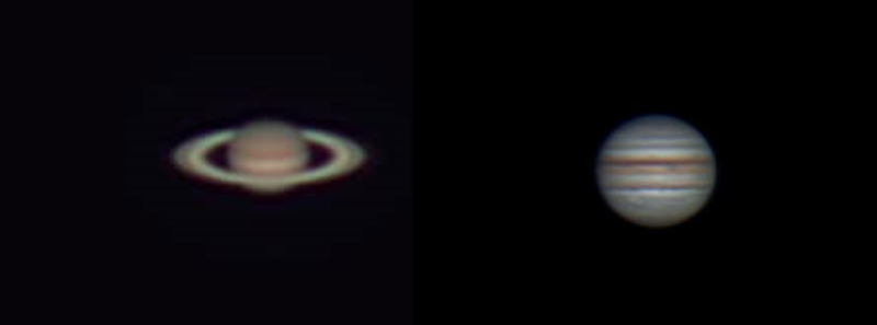 惑星は、明るく見つけやすいものが多い。木星、土星、火星、金星は、肉眼でもその位置が確認できます。木星の4大衛星、土星の環、火星の模様,金星の満ち欠けは、小口径の望遠鏡でも楽しめます。