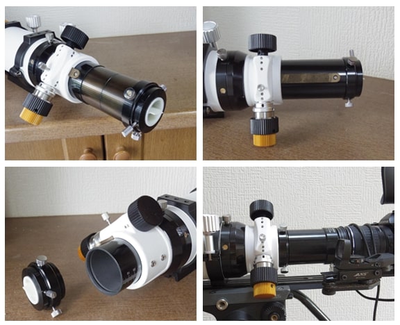 フォーカサーは360度回転し、止めている4個のネジは全て先端にプラスチックが付いていて鏡筒が傷つくのを防ぎます。