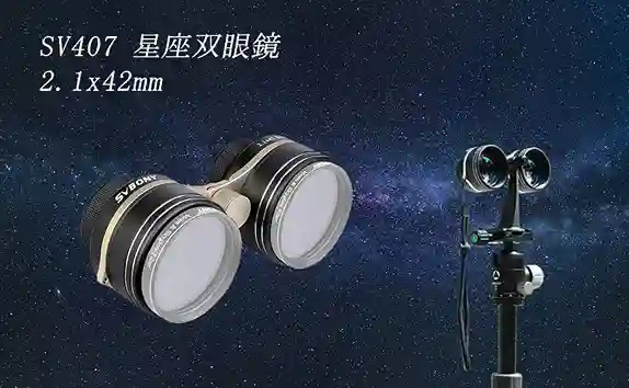 星空を広い範囲で観察するために開発された、倍率2.1倍、口径42mmの双眼鏡。
