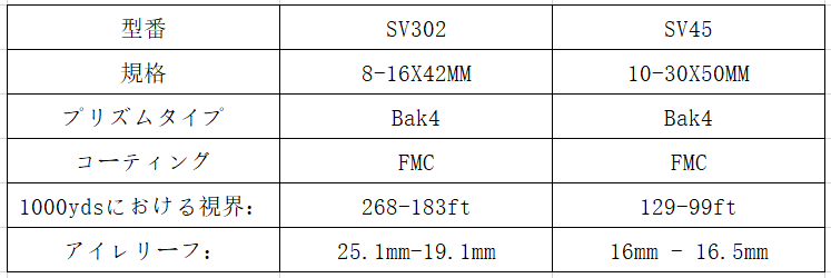 弊社には様々な単眼鏡が有り、中にはズーム単眼鏡は二つあります: SV302 8-16×42mm、SV45 10-30×50mm無段階ズーム式単眼鏡。