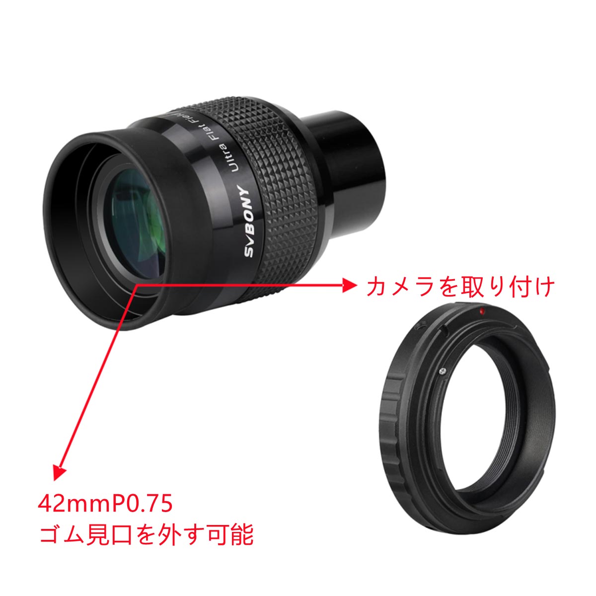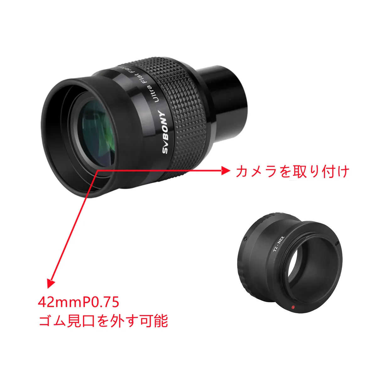 SV190 1.25 "UF18mmフラットフィールド アイピース コリメート撮影可能【 T2-NEX Eマウントリングアダプター】