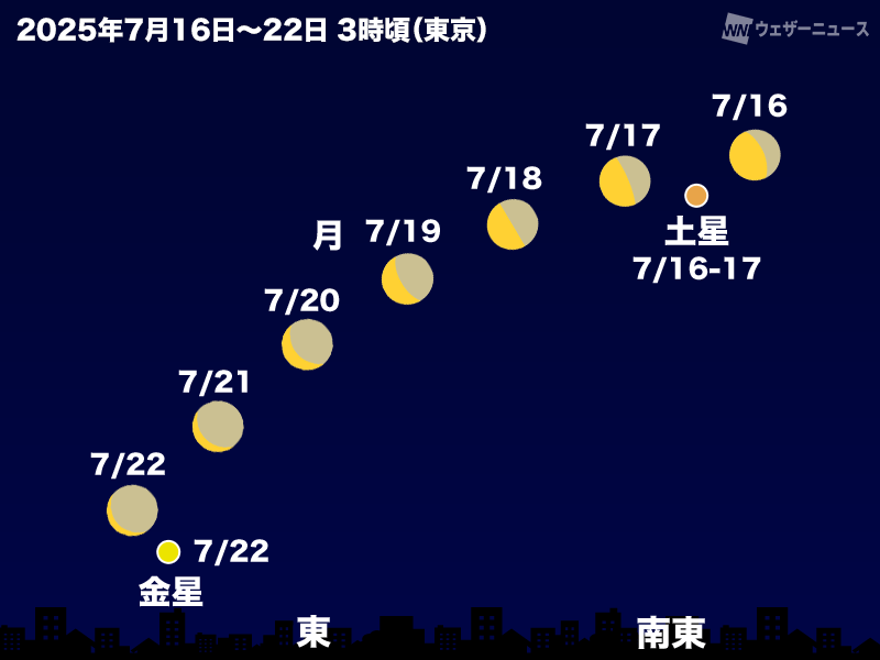 7月16-17日、22日月が土星と金星に接近