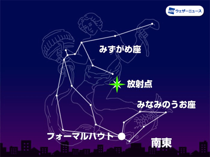 28日には7月りゅう座γ流星群(1時間あたり約5個)、みなみのうお座流星群が活動し、ペルセウス座流星群も出現を始めます。流れ星は空全体に広がるため、特定の方向に捉われず広い視野でお楽しみください。
